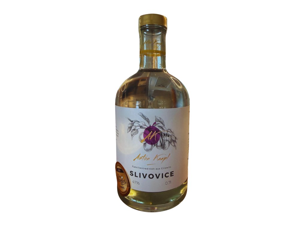Tradiční česká slivovice – ovocný destilát z pečlivě vybraných kvalitních a zralých švestek, jejichž pecky se před kvašením odstraňují, aby výsledná pálenka neměla hořkou hořkomandlovou příchuť. Destilace probíhá několikrát a výsledkem je jemný, ovocně sladký a aromatický destilát se svěží vůní švestek, který zráním v nerezových nádržích získává plnější a kulatější charakter.
