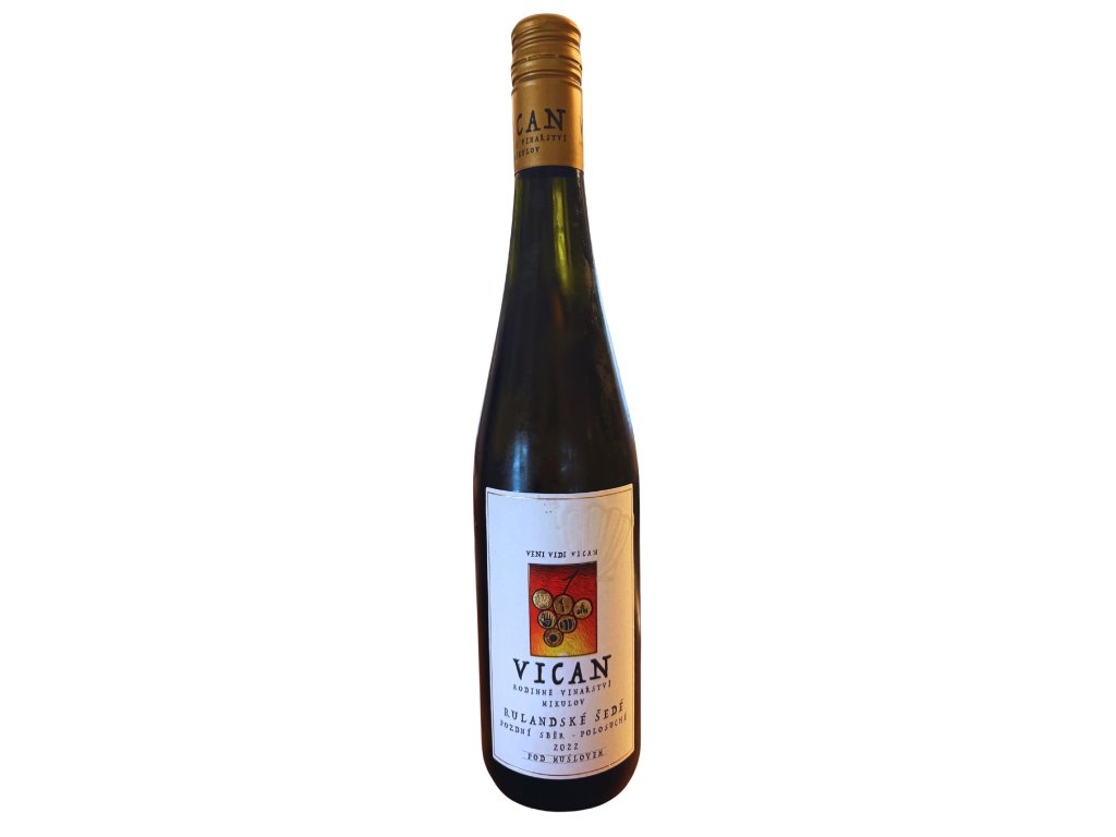 Vinařství: Vican rodinné vinařství Země: Česká republika Vinařská oblast: Morava Podoblast: Mikulovská Odrůda: Rulandské šedé Přívlastek: pozdní sběr Ročník: 2022 Styl: polosuché bílé víno Barva: světle žluto-zlatá, jiskrná