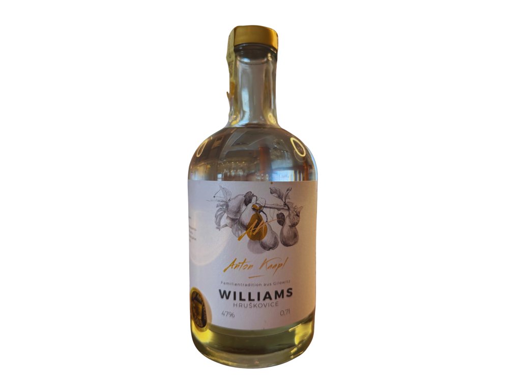 Tradiční český ovocný destilát (hruškovice) z ovocných kvasů vzniklých výhradně z hrušek odrůdy Williams. Destilace probíhá opatrně mistrem destilatérem tak, aby výsledný aromatický profil byl intenzivní, čistý a plně přenášel vůni a chuť zralých hrušek Williams s výraznou chutí a velmi dlouhou dochutí.
